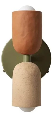 Sconces will serve as accents to the space both with terracotta incorporated in the materials. They will hang flush on the walls by the chair and sofa. The ceiling will boast a contrasting polished nickel flushmount.
