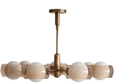 The Dion Pendant will act like a sculpture over the tub. The Dutton Brown Sconce will hang vertically on each side of the vanity sandwiching the mirror. The Schoolhouse light will hang in the toilet room as a flush mount.